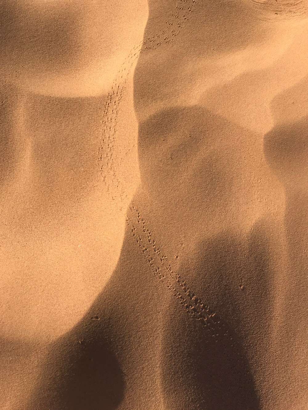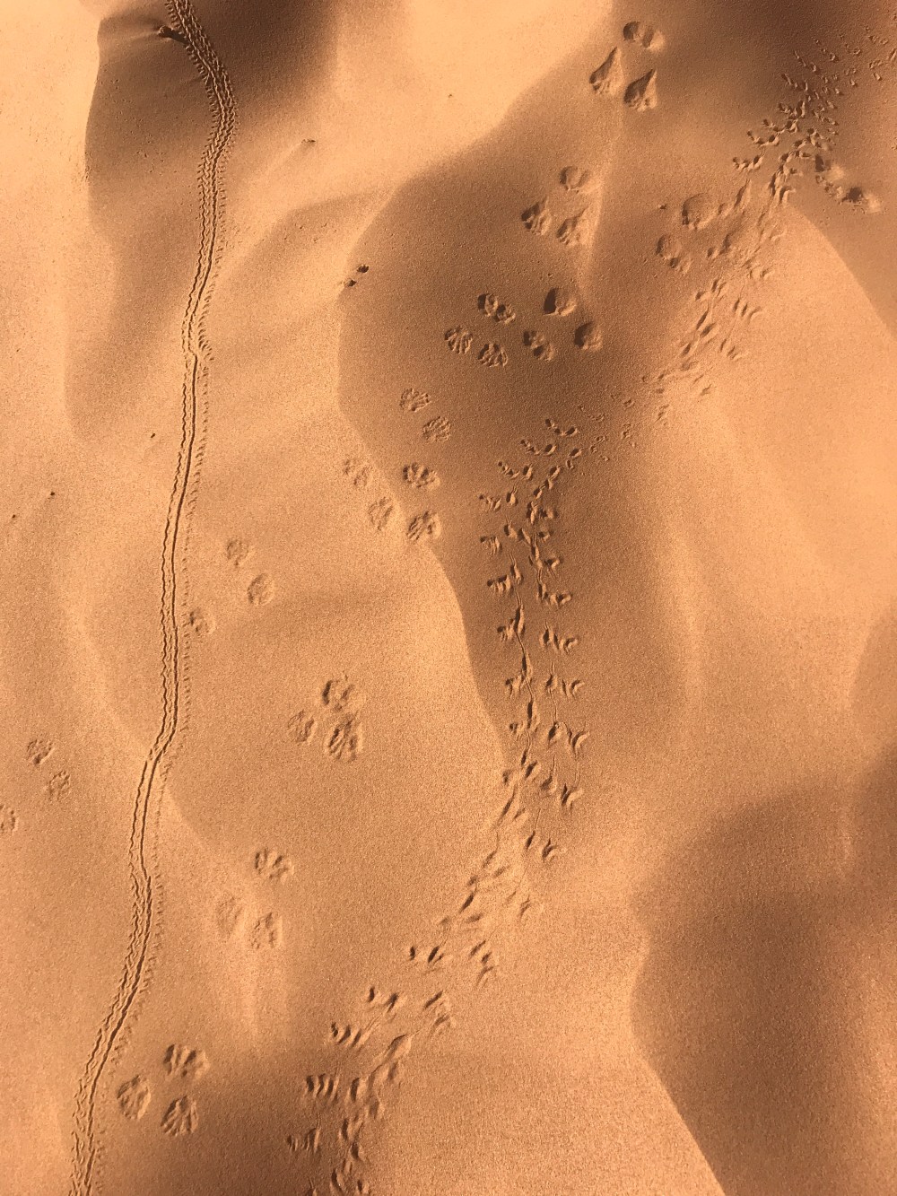 The following day we hiked/ rode the camels out. There were tracks in the sand from the nighttime desert animal activity.