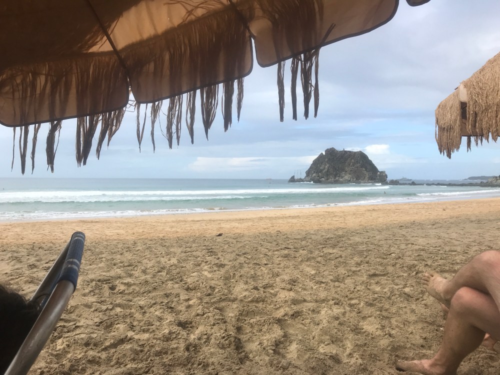 We sat on the beach in the rain. It was good to be relaxing on land.